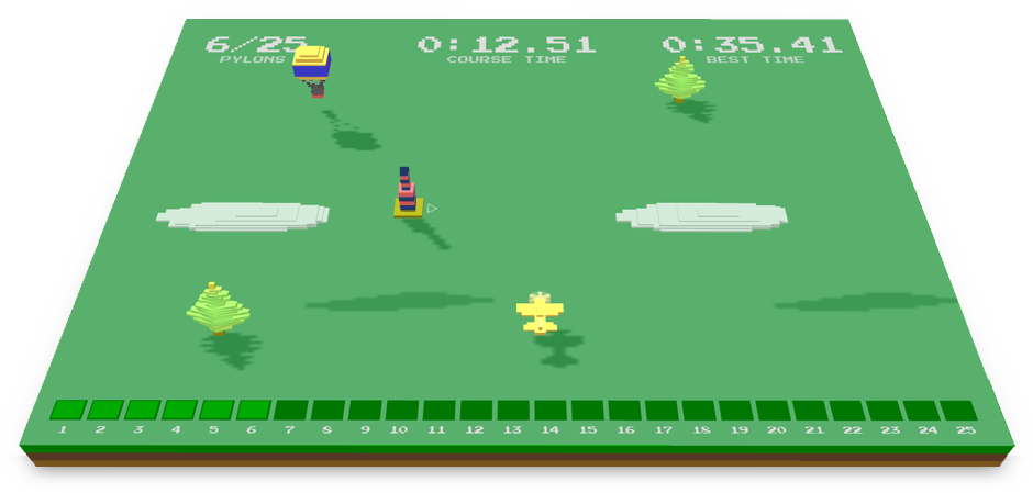 The goal of Sky Jinks is to race your P41 airplane through a pylon course in the fastest possible time without hitting pylons, trees or balloonists.