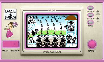 A fan made Game & Watch style LCD game where you are a plucky bridesmaid at a wedding who wants to get married next. You must out maneuver your rivals and grab enough flowers thrown from the bride's bouquet to attract a proposal from a handsome suitor. But will you take the first suitor that comes along? Or will you wait for Mr. Right?